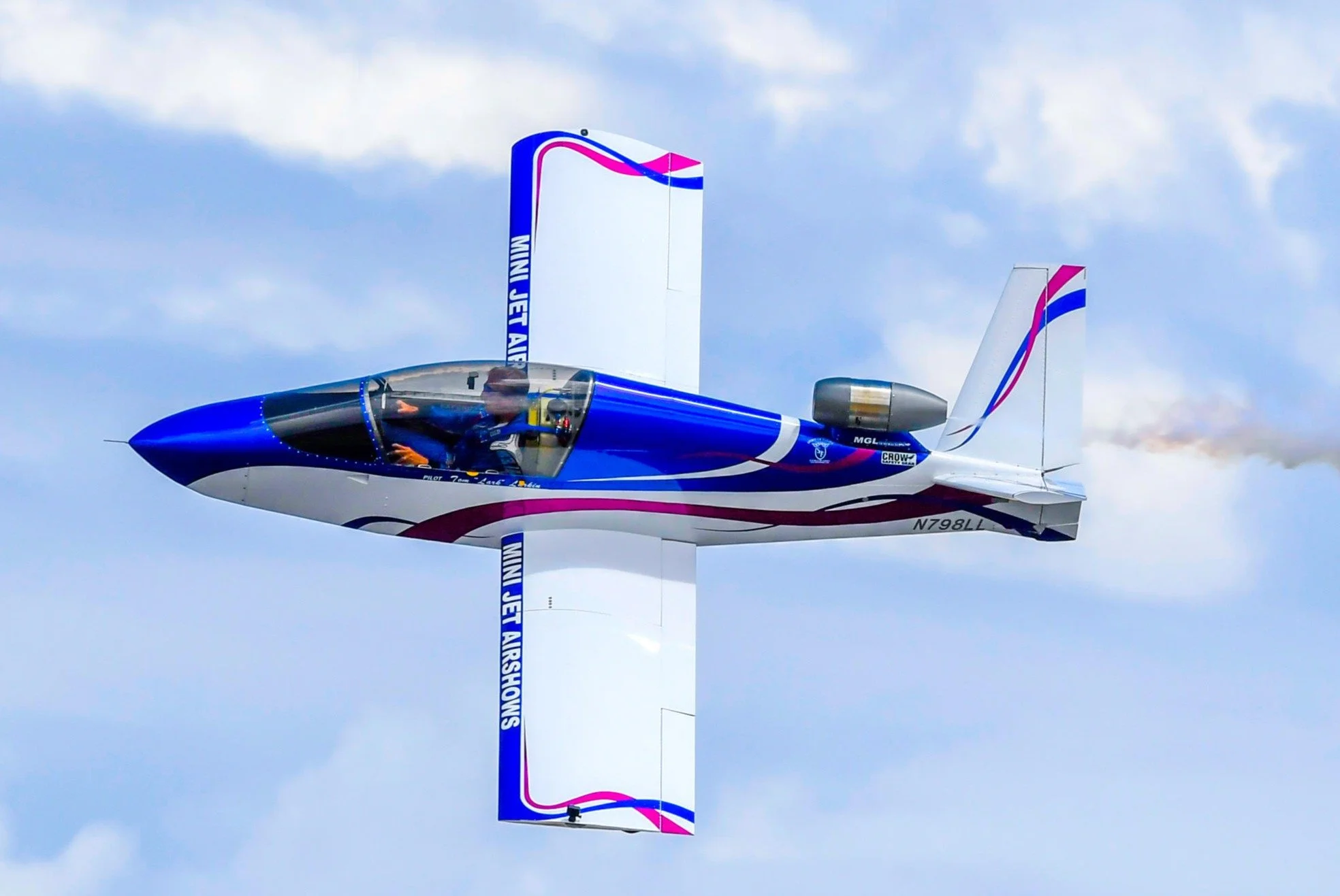 Mini Jet Airshows is a lifelong dream of the pilot Tom “Lark” Larkin. Having watched the BD-5J perform as a child at a local airshow, and then later becoming a fighter pilot, airline pilot, and aerobatic pilot; it was always his dream to do airshows in a “mini” jet.